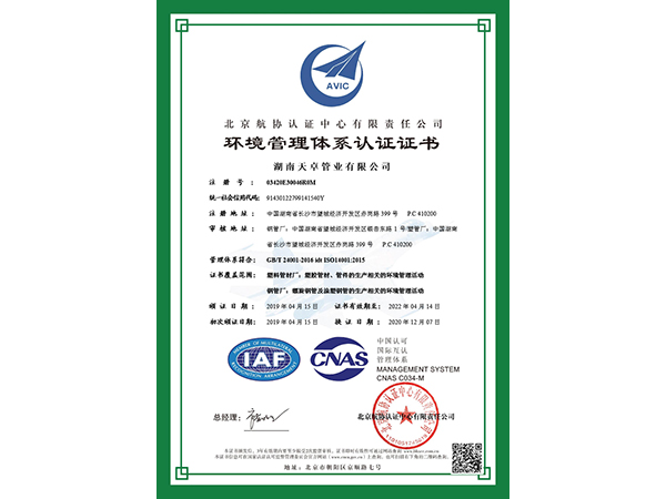 環境管理體系認證證書